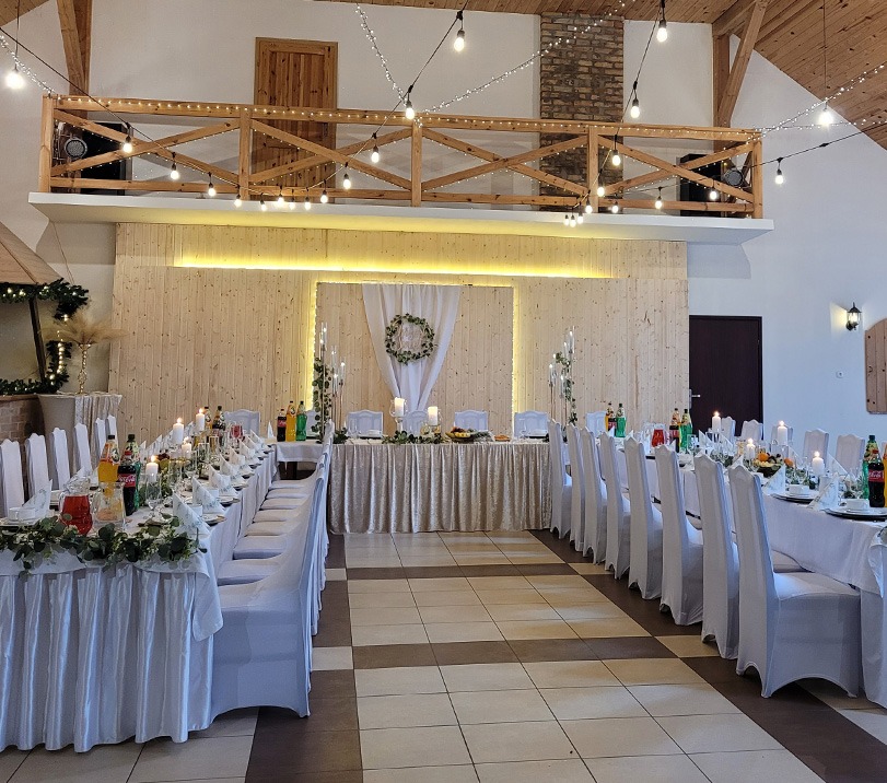Sala Bankietowa Do Rëna to idealne miejsce na organizację wyjątkowych uroczystości w sielskim, kaszubskim klimacie. Drewniane wnętrze, otoczone zielenią i spokojem natury, tworzy atmosferę pełną ciepła, uroku i elegancji.