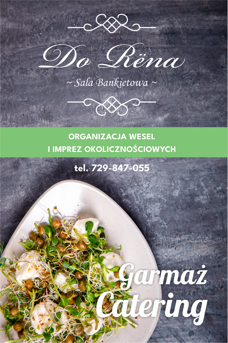 W Sali Bankietowej Do Rëna wiemy, że dobre jedzenie potrafi stworzyć wyjątkowy nastrój. Nasza oferta cateringu i garmażu to połączenie tradycyjnych smaków z nowoczesną formą podania. Przygotowujemy zarówno klasyczne dania domowe, jak i eleganckie przekąski, idealne na rodzinne spotkania, przyjęcia firmowe czy uroczystości w domu. Każde danie tworzymy z najwyższej jakości składników, dbając o świeżość, estetykę i smak, który zawsze zachwyca.