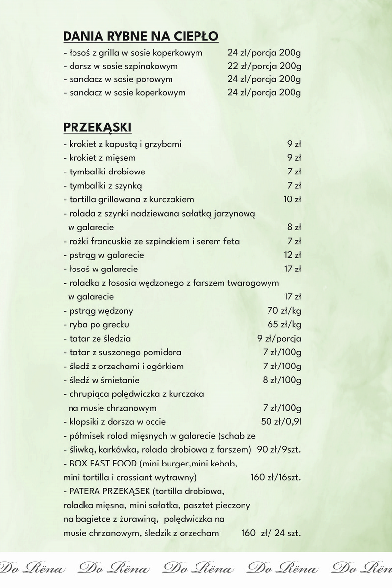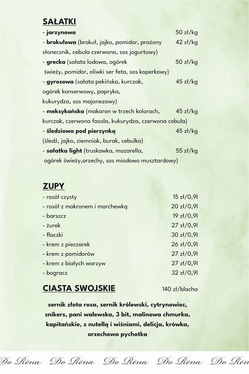 W Sali Bankietowej Do Rëna wiemy, że dobre jedzenie potrafi stworzyć wyjątkowy nastrój. Nasza oferta cateringu i garmażu to połączenie tradycyjnych smaków z nowoczesną formą podania. Przygotowujemy zarówno klasyczne dania domowe, jak i eleganckie przekąski, idealne na rodzinne spotkania, przyjęcia firmowe czy uroczystości w domu. Każde danie tworzymy z najwyższej jakości składników, dbając o świeżość, estetykę i smak, który zawsze zachwyca.