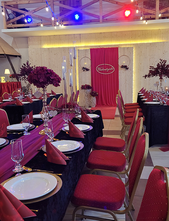 Sala Bankietowa Do Rëna to idealne miejsce na organizację wyjątkowych uroczystości w sielskim, kaszubskim klimacie. Drewniane wnętrze, otoczone zielenią i spokojem natury, tworzy atmosferę pełną ciepła, uroku i elegancji.