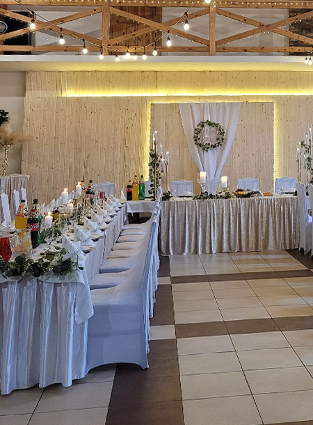 Pierwsza Komunia czy Chrzest to jedne z najważniejszych momentów w życiu dziecka i jego bliskich. W Sali Bankietowej Do Rëna tworzymy wyjątkową przestrzeń, w której te uroczystości nabierają niepowtarzalnego charakteru. Drewniane wnętrza, eleganckie dekoracje i spokojne otoczenie natury sprzyjają rodzinnym spotkaniom pełnym radości i wzruszeń. Zadbamy o każdy szczegół – od aranżacji sali, przez menu, aż po przyjazną obsługę, byście mogli w pełni cieszyć się wspólnym świętowaniem.